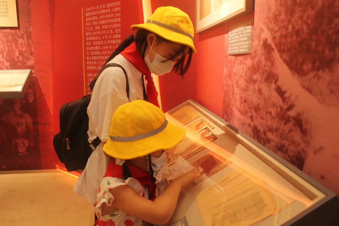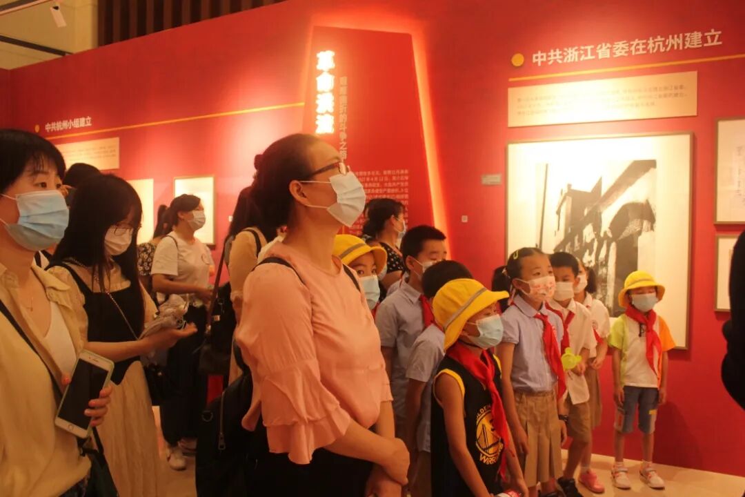 系上红领巾,带上小黄帽,早上8点半,小朋友们准时出发前往浙江省档案馆观看“百年潮涌——浙江省庆祝中国共产党成立100周年大型展览”。